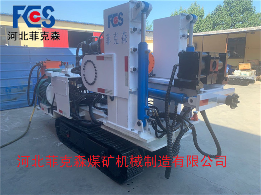 4.CMS1系列煤礦業(yè)深孔鉆車是履帶行走的探水、探瓦斯、探鉆層、注水等的鉆孔設備。主要用于煤層的掘進工作面有防突措施要求的軟巖或煤層中實施密集型鉆孔,也適用于地表工程施工。該設備具有結構緊湊、操作簡單、機動靈活、安全性可靠、一機多用等特點;如配套普通擴孔鉆頭等鉆具還可進行回轉鉆進??膳涮捉饎偸瘡秃掀刭|鉆頭、硬質合金鉆頭、大口徑牙輪鉆頭等的鉆進,廣泛用于礦井內不同角度的探放水、瓦斯排放、錨固、地質勘探等鉆孔施工,特別適合巷道內全方位鉆孔